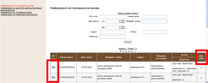 • 3) Например: Информация по гражданским делам.