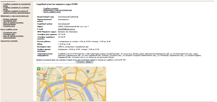 • 4) При нажатии на № с/у(номер судебного участка) можно будет посмотреть подробную информацию о судебном участке